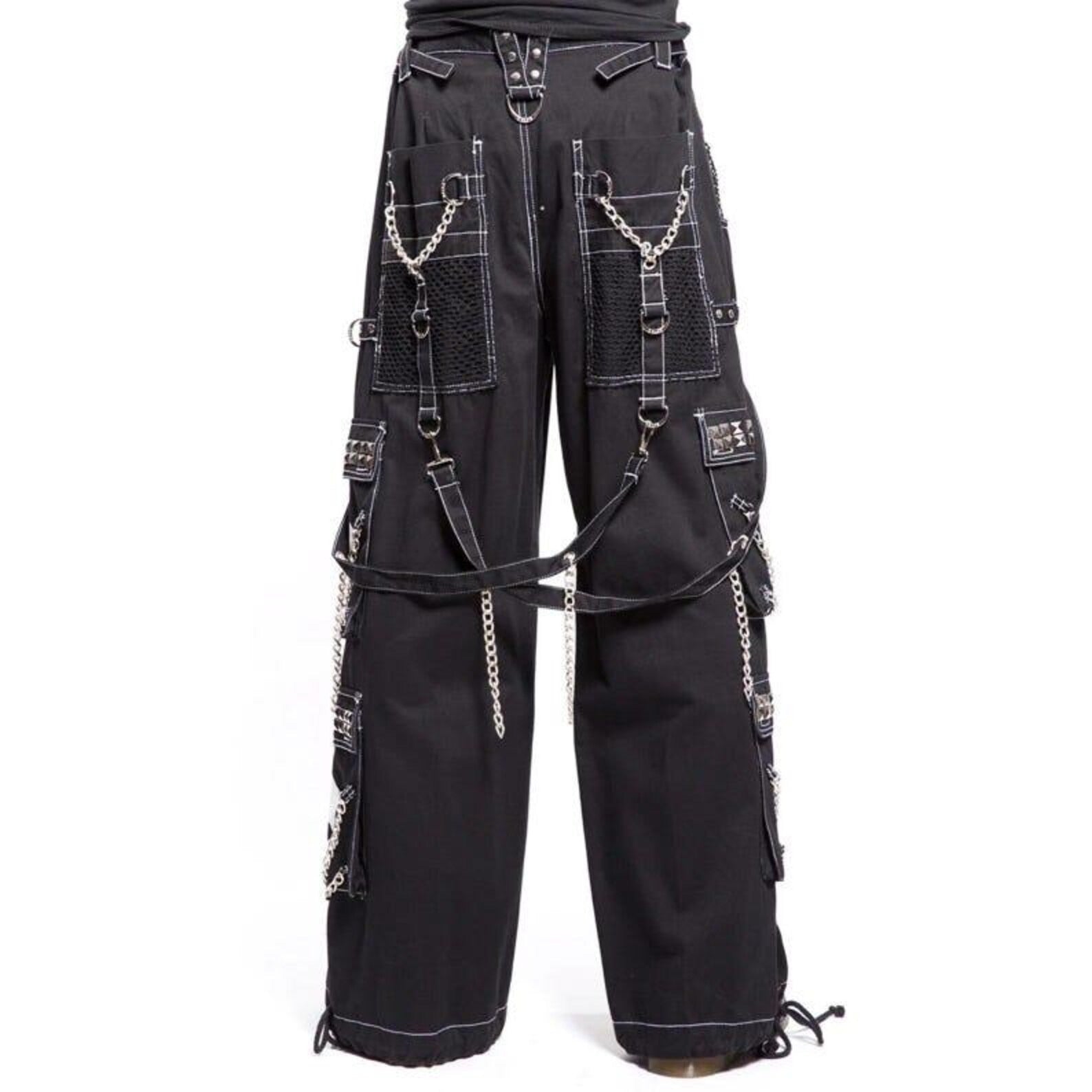 Styling these gothic cargo trousers is a creative joy. Pair them with combat boots and a studded belt for a full punk rock outfit, or tone it down with a graphic tee for an everyday edgy look. 🌌 Add silver accessories or a spiked choker to amplify the gothic vibe, making them perfect for festivals, themed parties, or even as a bold everyday choice. Their versatility shines whether you’re hitting the dance floor or hanging out with friends.