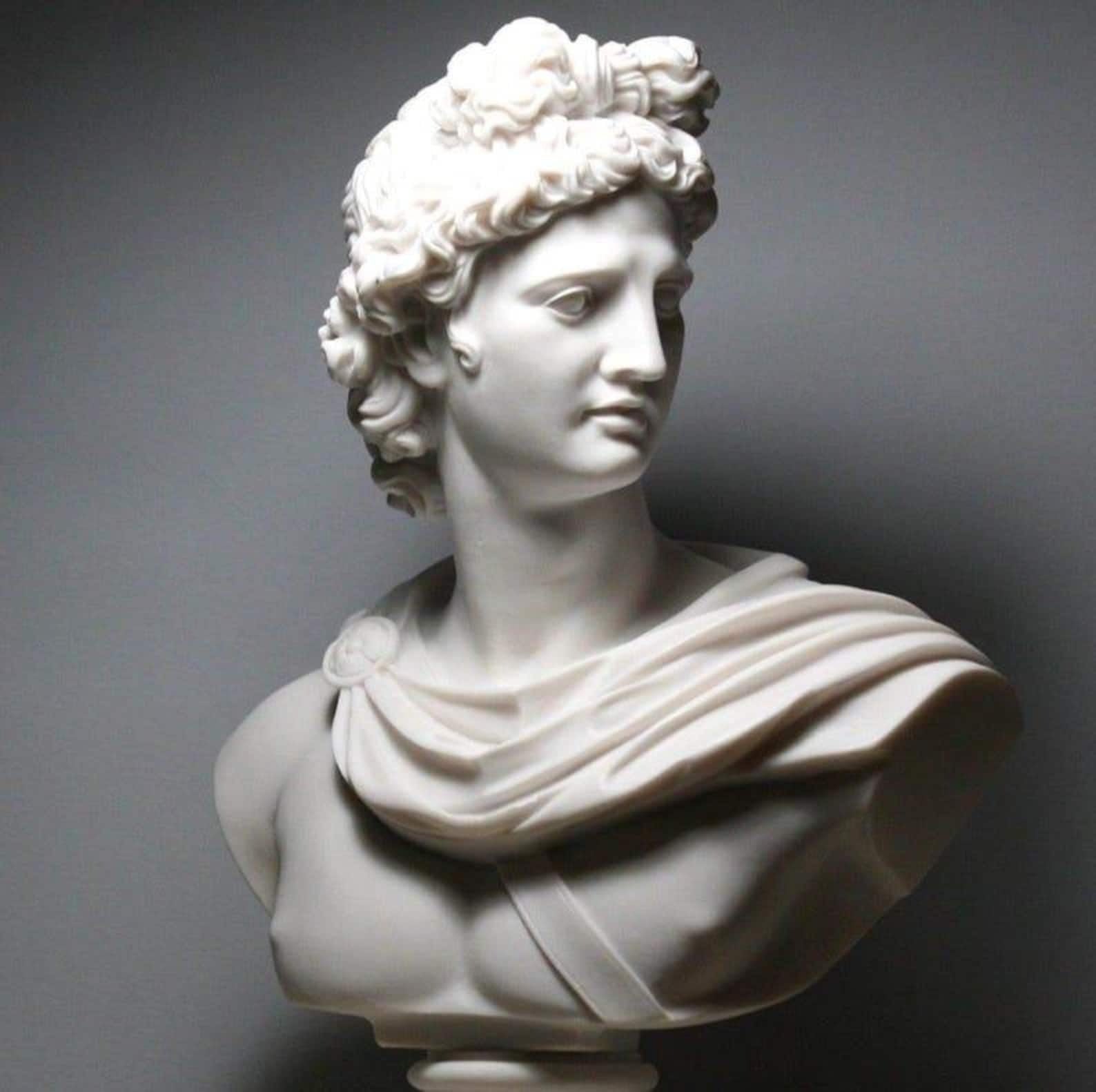 Classical Greek–Roman Design: A stunning reproduction of the iconic Apollo bust, perfect for art lovers, historians, and décor enthusiasts.