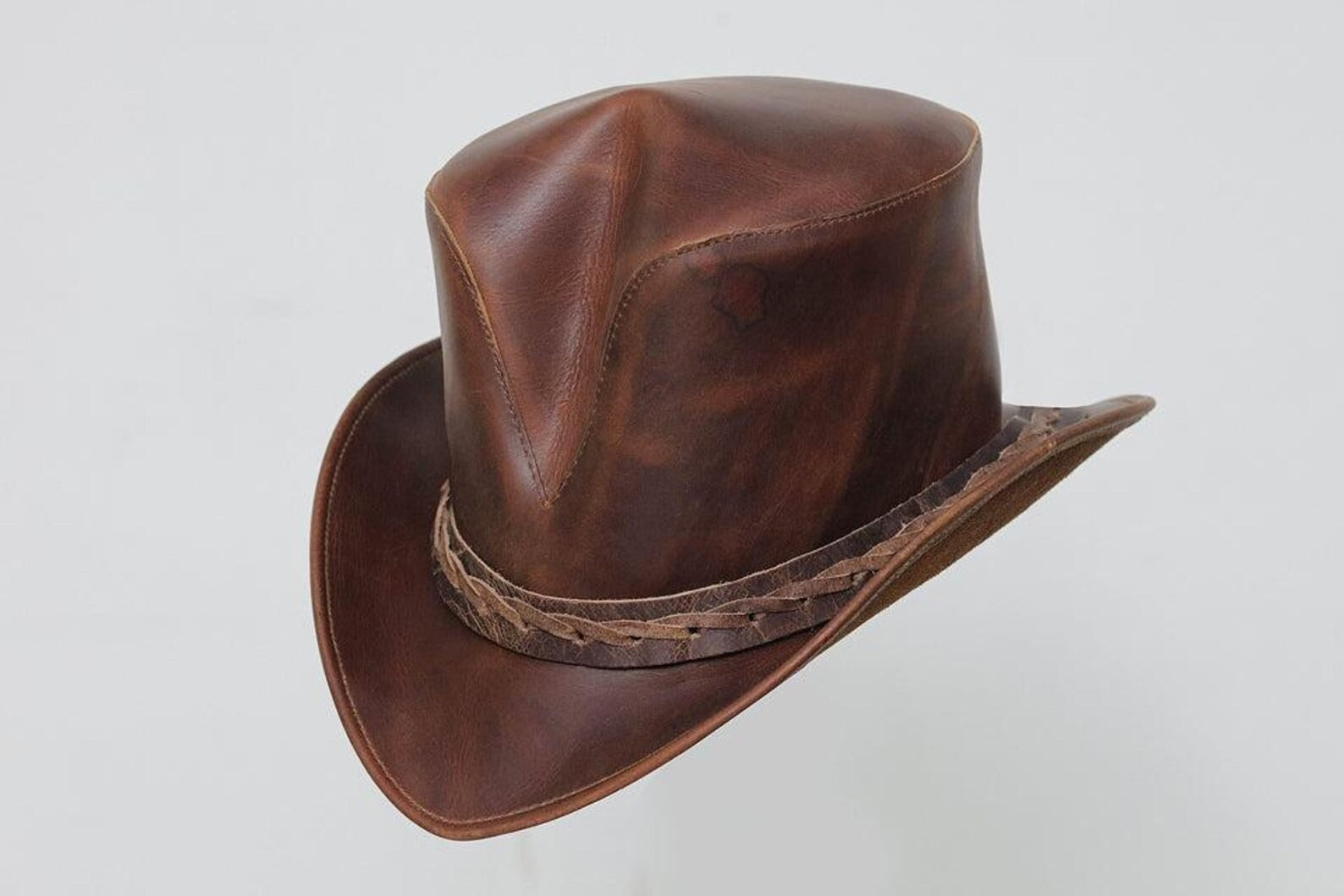 Handmade Brown Leather Cowboy Top Hat – Genuine Cowhide | Vintage Western Steampunk Festival Wear