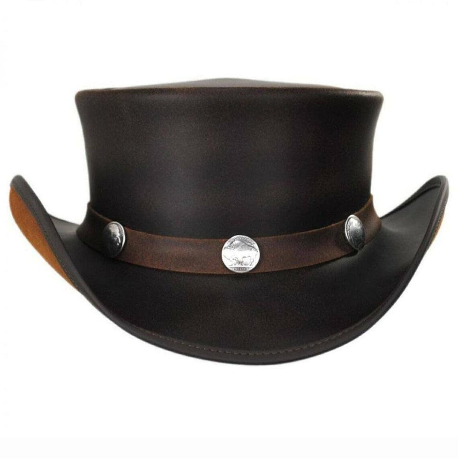 Handmade Leather Steampunk Cowboy Hat: Buffalo Concho Band